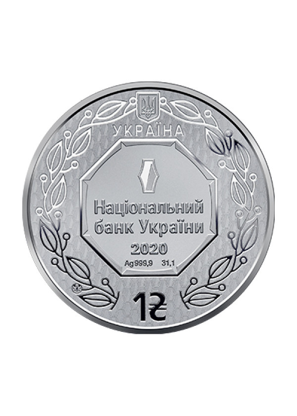 On the obverse face of 2020, Ukrainian Silver Archangel Michael Coin is a depiction of the coat of arms for the nation. The Ukrainian coat of arms design found on this side is new for the 2020 release. The national shield, an elongated hexagon split diagonally, is featured in a central design with the inscription of the National Bank of Ukraine and the coin’s date mark below. Around the edge of the coin’s design field is a leaf pattern with the modern coat of arms with the trident at the top.