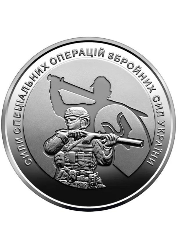 The commemorative coin is dedicated to a special kind of forces of the Armed Forces of Ukraine, which includes special purpose units and units of information and psychological special operations, staffed by specialists with special capabilities in the fields of intelligence, military support for the performance of complex, dangerous, sometimes politically sensitive operations.