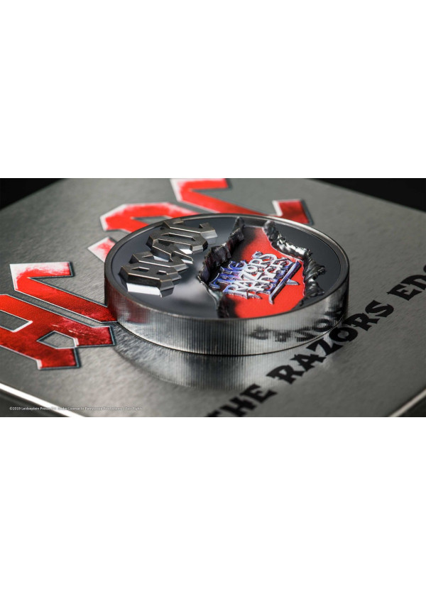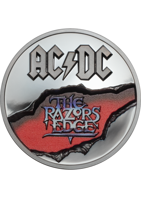 Check out the proof finish that is expertly colored in just the right spots and a mind blowing high relief based on our smartminting© technology is a modern 3D version of the original album cover. This 2 oz Razors Edge coin is on the cutting edge of minting technology!