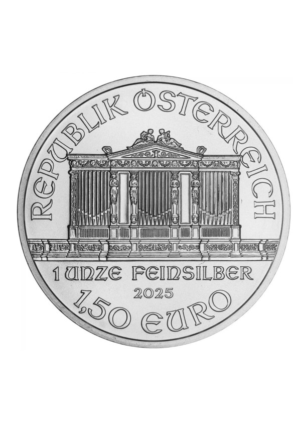 Tags: 2025 Austrian Philharmonic, 1oz silver coin, Austrian Mint, silver bullion, investment coin, pure silver, Austrian coin, Philharmonic coin, silver investment, Van Central Mint