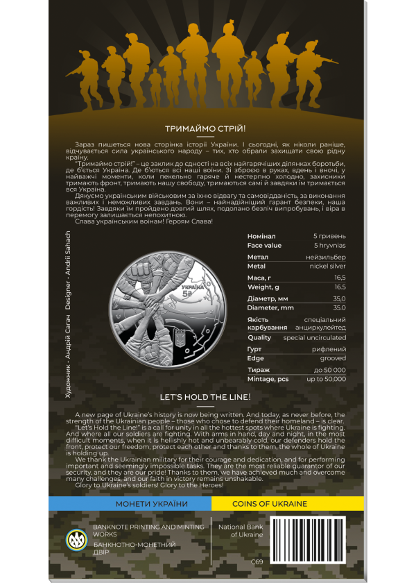 - Product Code: Let’s Hold the Line! 5 UAH Ukrainian Military Tribute Coin
